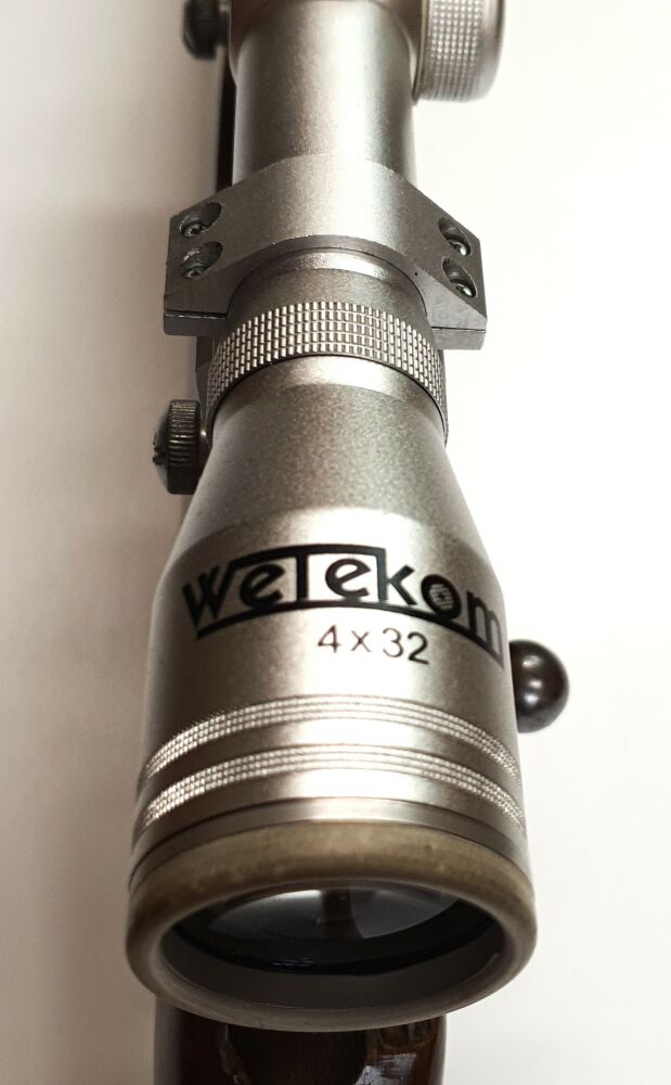 Zusätzlich verfügt die Waffe über ein Wetekom 4x32 Zielfernrohr.