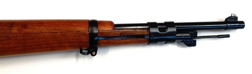 Repetierbüchse, Santa Barbara M98, .308win. Beim M98 handelt es sich um ein K98, das an das Kaliber .308win. angepasst wurde und in seiner Bauform verkürzt wurde. Zudem wurde die Visiereinheit erneuert und eine alternative Möglichkeit zur Bajonettbefestigung hinzugefügt.