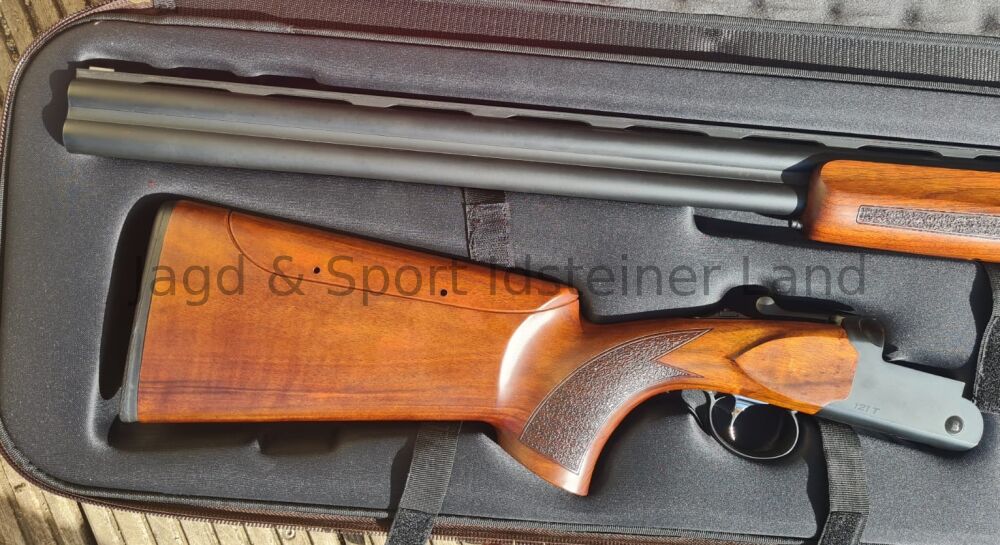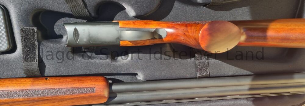 Normalschaft mit Pistolgriff aus ausgesuchtem türkischen Nussholz, Hinterschaft ist verstellbar, Keilverschluss, 5 Wechselchokes, Fiberglas-Korn, 10mm-Schiene, Ejektoren sowie ansprechendem Waffenkoffer.