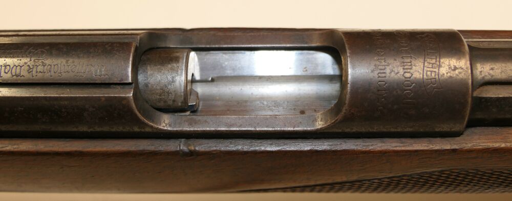 Auf der Hülse oben gestempelt Logo: Walther Sportmodell Meisterbüchse