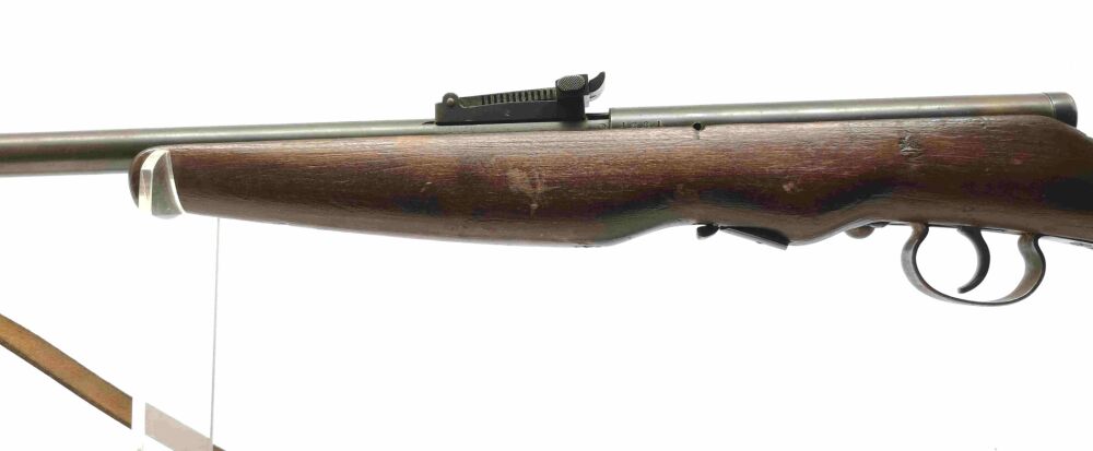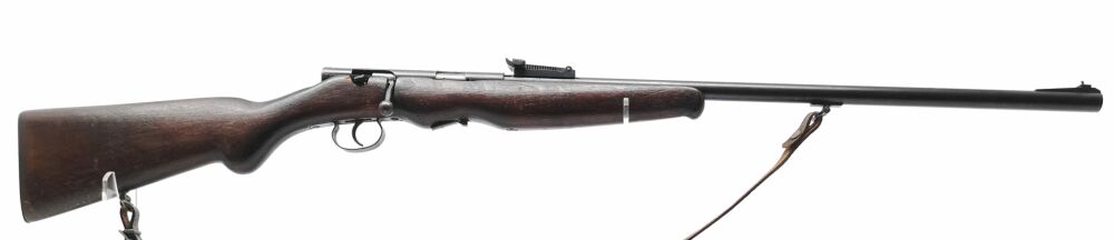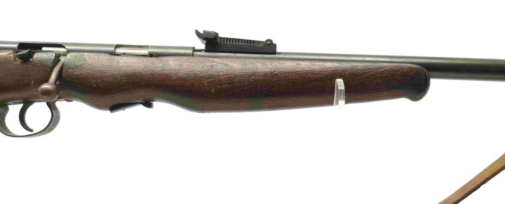 Besonderheit: seltene Repetierbüchse im Kleinkaliber von Tula aus dem Jahr 1935, sog. Wehrsportkarabiner, Steckmgazin, russisch robust, dicker Lauf der späteren Modellreihe 8M, Schiebevisierung, Stiftkorn, Metallschaftkappe, Lederriemen, technisch i.O., optisch altersbedingt (90 Jahre) noch Note 3, Metallschaftkappe