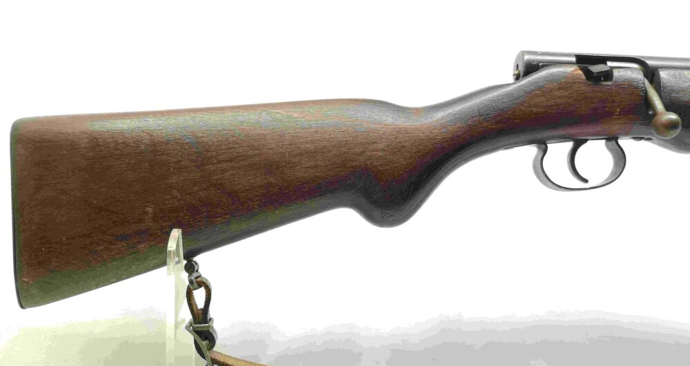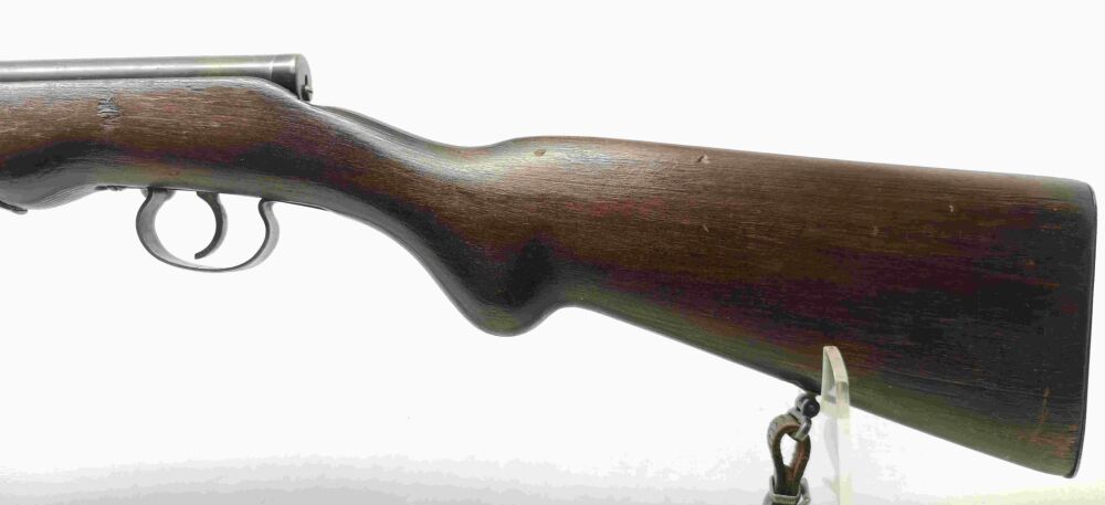 N3651 Tula - ohne - Note 3 - seltene Repetierbüchse im Kleinkaliber von Tula aus dem Jahr 1935, sog. Wehrsportkarabiner, Steckmgazin, russisch robust, dicker Lauf der späteren Modellreihe 8M, Schiebevisierung, Stiftkorn, Metallschaftkappe, Lederriemen, technisch i.O., optisch altersbedingt (90 Jahre) noch Note 3, Metallschaftkappe *** EWB-pflichtig ***