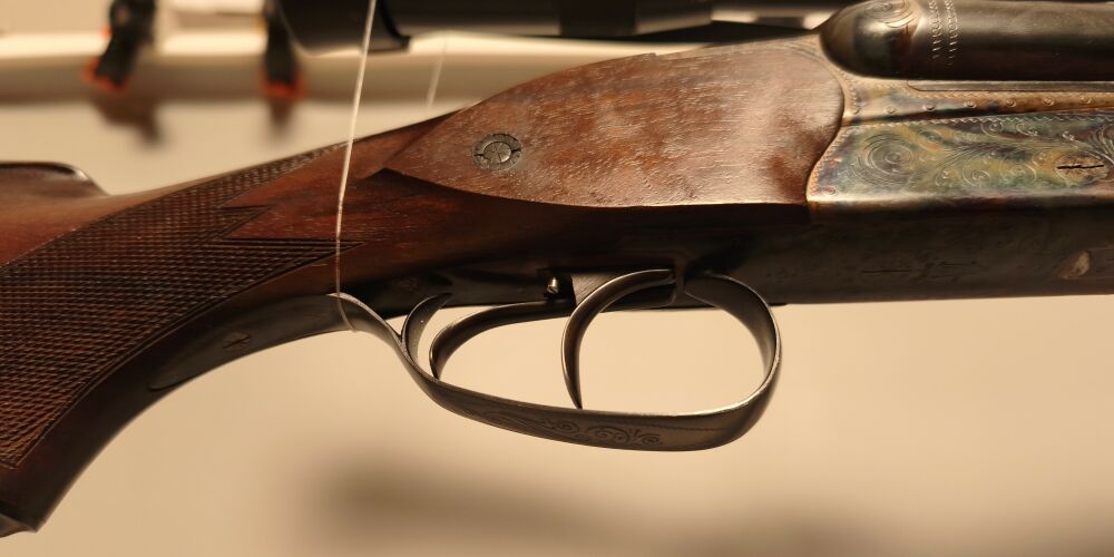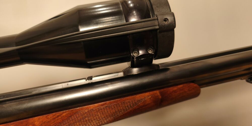Suhler Drilling von Simson in absolut hervorragendem Zustand. Engste Passungen, kein Klappern. Absolut dicht. Saugendes Schließen. Wirklich bemerkenswert. Baujahr 1987. Buntgehärtete Basküle und Vorderschaftmechanik. Saugend und spannungsfrei montierte Schwenkmontage!! Montiertes Nickel Supra 3-12x56 mit Absehen 4 ist ebenfalls im guten Zustand. Absolut klarer Durchblick, leichte äussere Gebrauchsspuren. Durch die Schwenkmontage kann sehr leicht auch ein anderes Glas montiert werden (Das ist bei klassischen Drillingen ja in der Regel der Knackpunkt). Dort wird in der Regel nochmal richtig Geld versenkt wenn man upgraden will. Mit dieser Waffe kann man sofort losgehen ohne dass man das Gefühl hat die Optik ist ein halbes Jahrhundert überholt. 63cm Lauflänge. Innen Spiegelblank. Wirklich perfekt. Profil des Büchsenlaufs nahe neuwertig. Laut Vorbesitzer sind da keine 30 Schuss durch gegangen. Schaftholz mit kleinen Gebrauchsspuren. Französischer Stecher, deutsche Backe und Horn? oder Edelholz? Schaftkappe. Die Zierköpfe der Schrauben alle korrekt ausgerichtet und unbeschädigt. Klappkimme funktionsfähig. Suhler Beschuss 10/87, 1/2 und 1/1 Choke. Die Passfläche am Laufbündel ist auf dem Bild mit Öl benetzt. Keinerlei Korrosion, nirgends!!