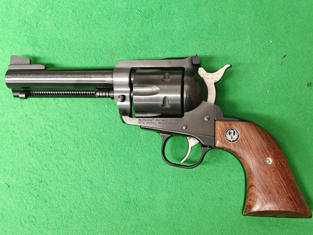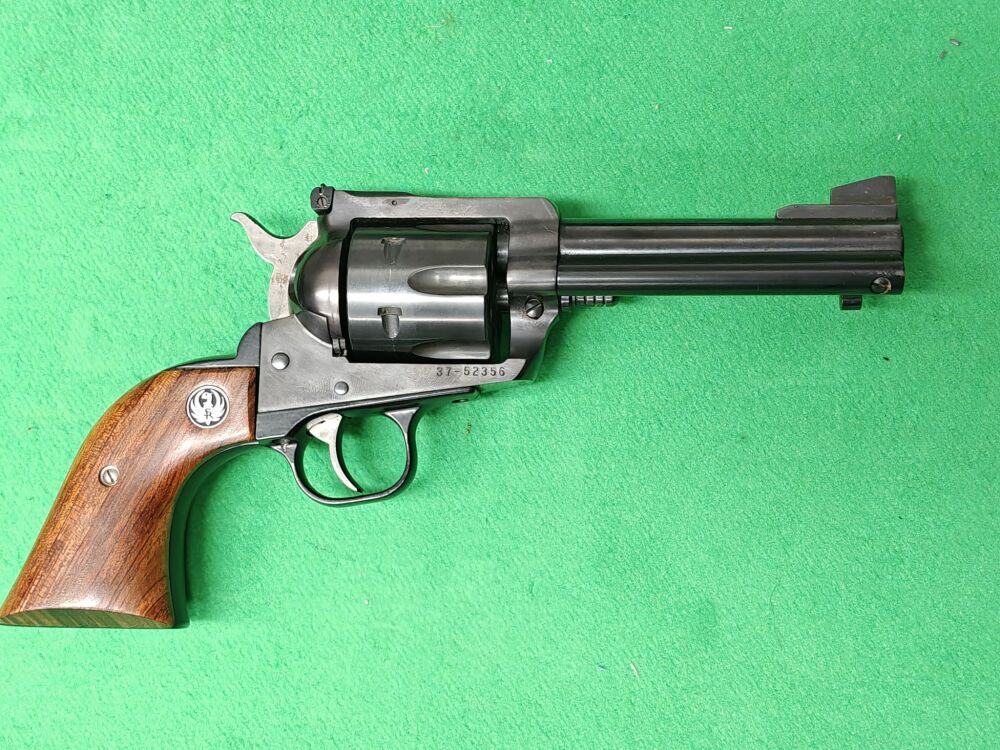 Ruger Blackhawk Revolver im Kaliber .357 Magnum – ein klassischer Single-Action-Revolver im Western-Stil, bekannt für seine robuste Bauweise und zuverlässige Funktion. Der Blackhawk bietet präzise Visierung, sauberen Abzug und eine sehr stabile Rahmenkonstruktion für langlebigen Einsatz auf dem Schießstand. Ideal für Sportschützen und Sammler: authentisches Handling, starke .357Mag.-Performance und hohe Schussfestigkeit. Ein Ruger-Klassiker mit Kultfaktor und Top-Wertbeständigkeit.