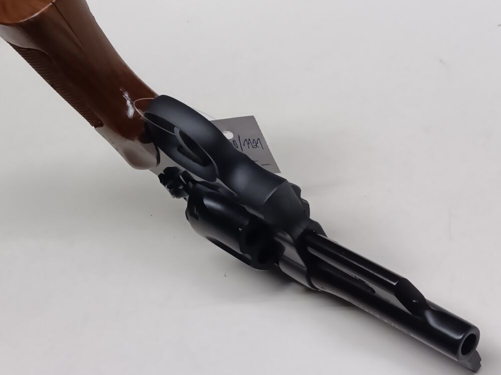 Der Revolver befindet sich in nahezu neuwertigem Zustand , der 10 cm lange Lauf ist innen spiegelblank , Gesamtlänge 24 cm , Visierlänge 14 cm , festes Balkenkorn , höhen-und seitenverstellbare Kimme , Double-Action Abzug , 6-schüssige Trommel , originale Holzgriffschalen mit Emblemen , vollständige Originalbrünierung , Abzug und Hahn sind Buntgehärtet , Deutscher Beschuß von 1972