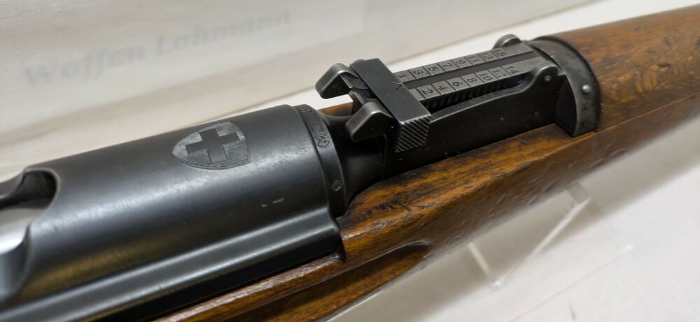 Karabiner K31 im guten Erhaltungszustand Waffenfabrik Bern Kaliber 7,5 x55 nummerngleich Kastenmagazin 6 schüssig Geradezugverschluss Deutscher Beschuss ...weiterlesen