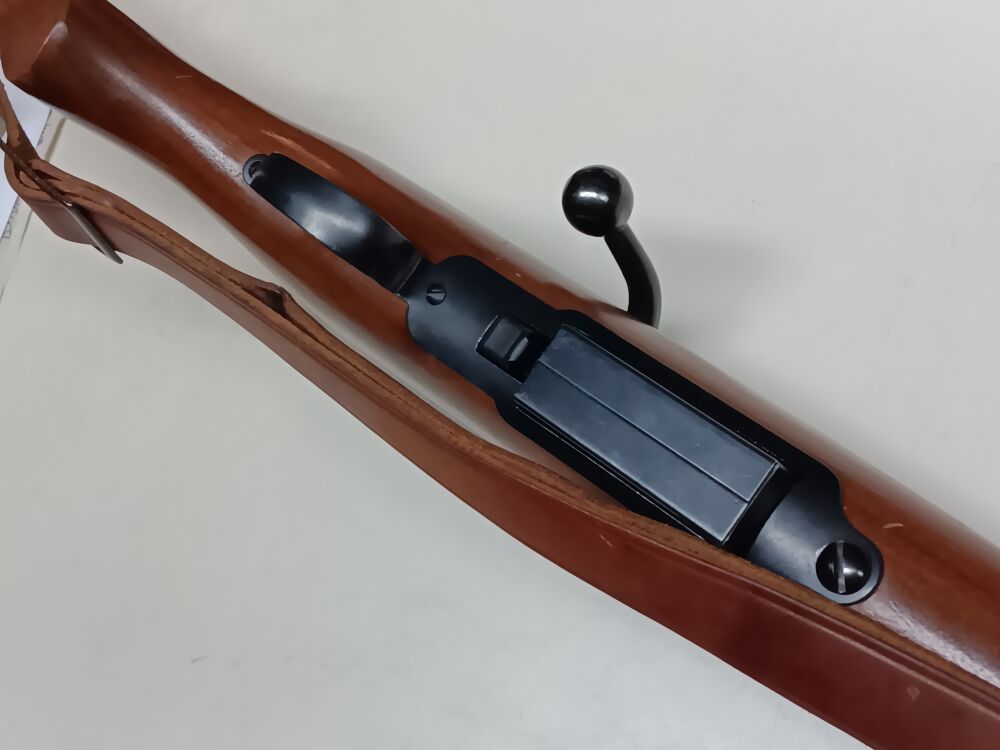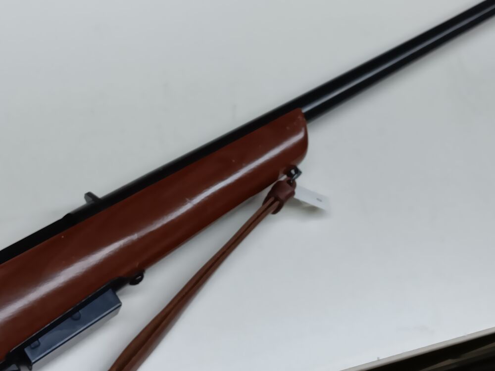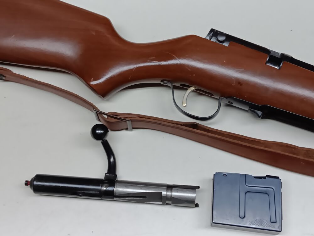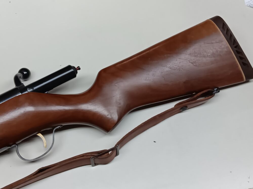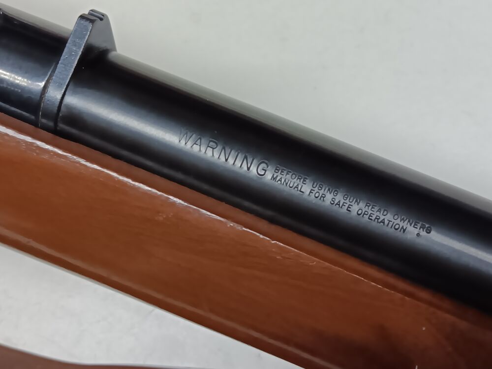 Repetierflinte mit massivem Zylinderverschluß mit 2 Auszieherkrallen , der 91,5 cm lange Lauf ist innen Blank , Gesamtlänge 145 cm , Schaftmass 36 cm , Visierlänge 88 cm , Messing-Perlkorn , feste Standkimme , Flintenabzug , das Abzugszüngel ist Goldgelb angelassen , originales herausnehmbares Stahlblechmagazin für 2 Patronen , originaler Marlin-Lederriemen , vollständige Originalbrünierung , der Holzschaft trägt rundum minimale Gebrauchsspuren , ventilierte Gummischaftkappe , Deutscher Beschuß von 1982