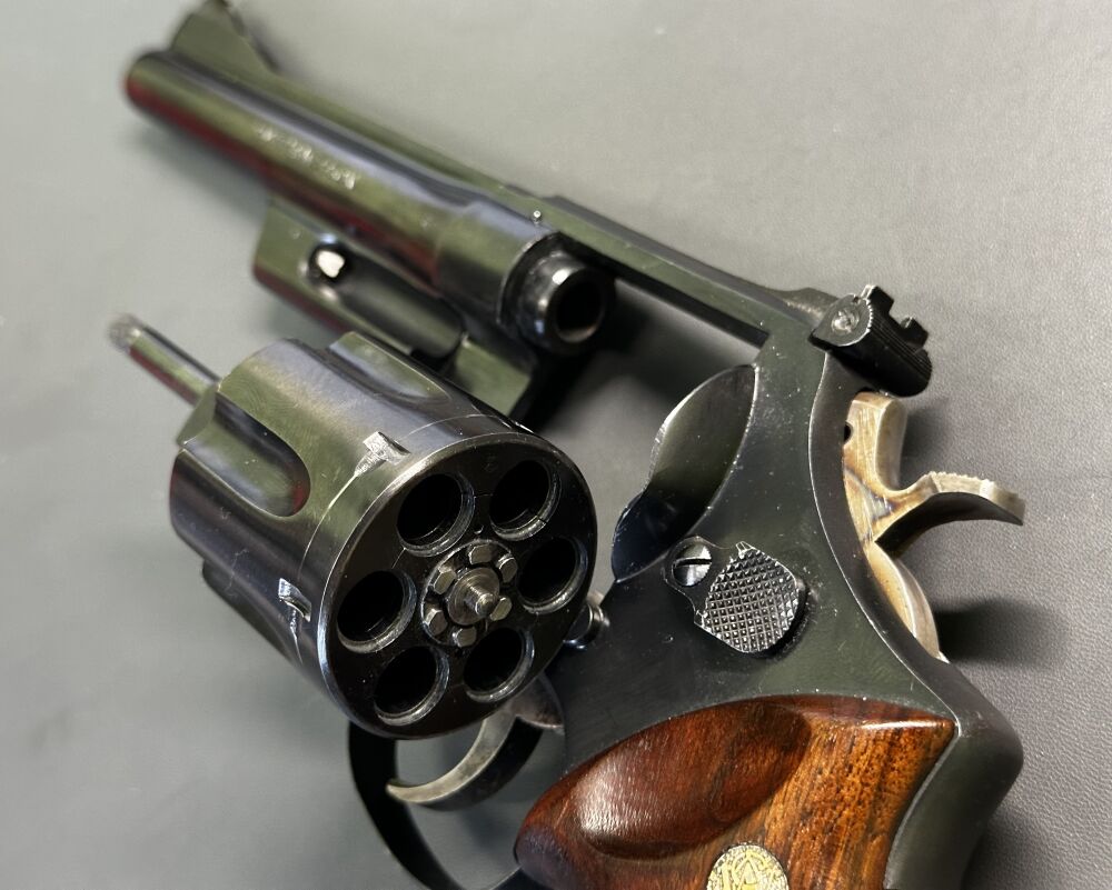 Gebrauchtwaffe Smith & Wesson Modell Highway Patrolman. Sehr gut erhaltener heavy duty Revolver mit M.29 Rahmen für stärkste Ladungen. Sport - Jagdtauglichkeit. Smith & Wesson Model 28... ...weiterlesen