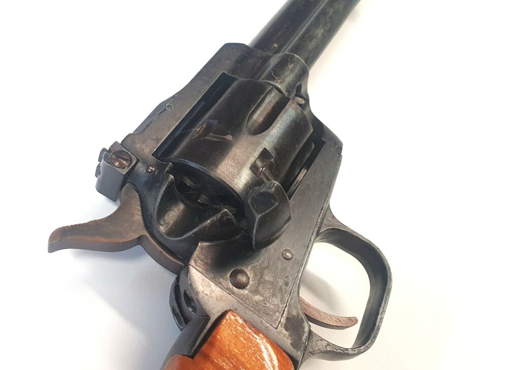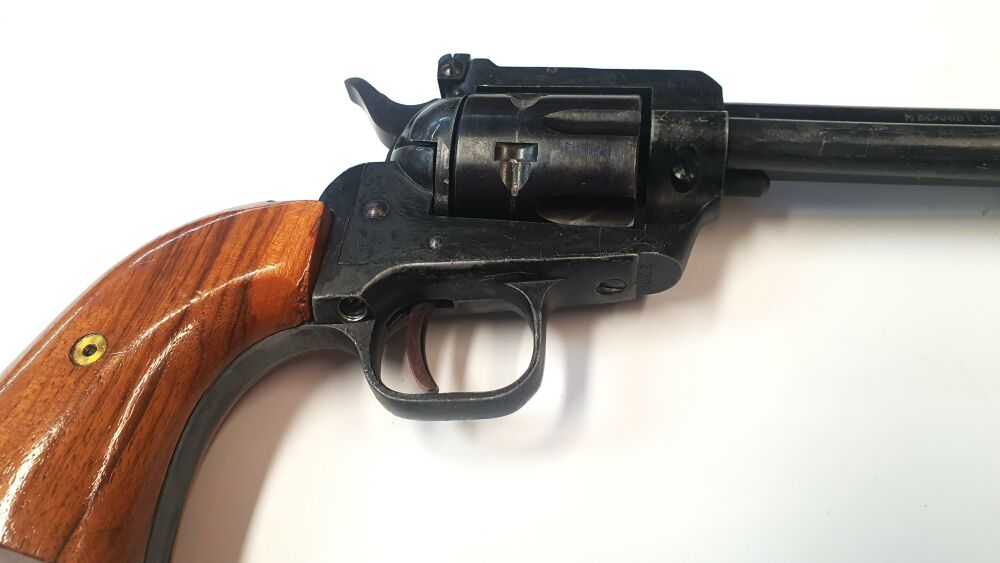 !Gebrauchtwaffe! Hersteller: H.Schmidt. Kaliber: 4mmM20. Kapazität: 6 Schuss in der Trommel. Zustand: leicht-mittlere gebrauchsspuren. Alle wesentlichen Teile funktionstüchtig. ... ...weiterlesen