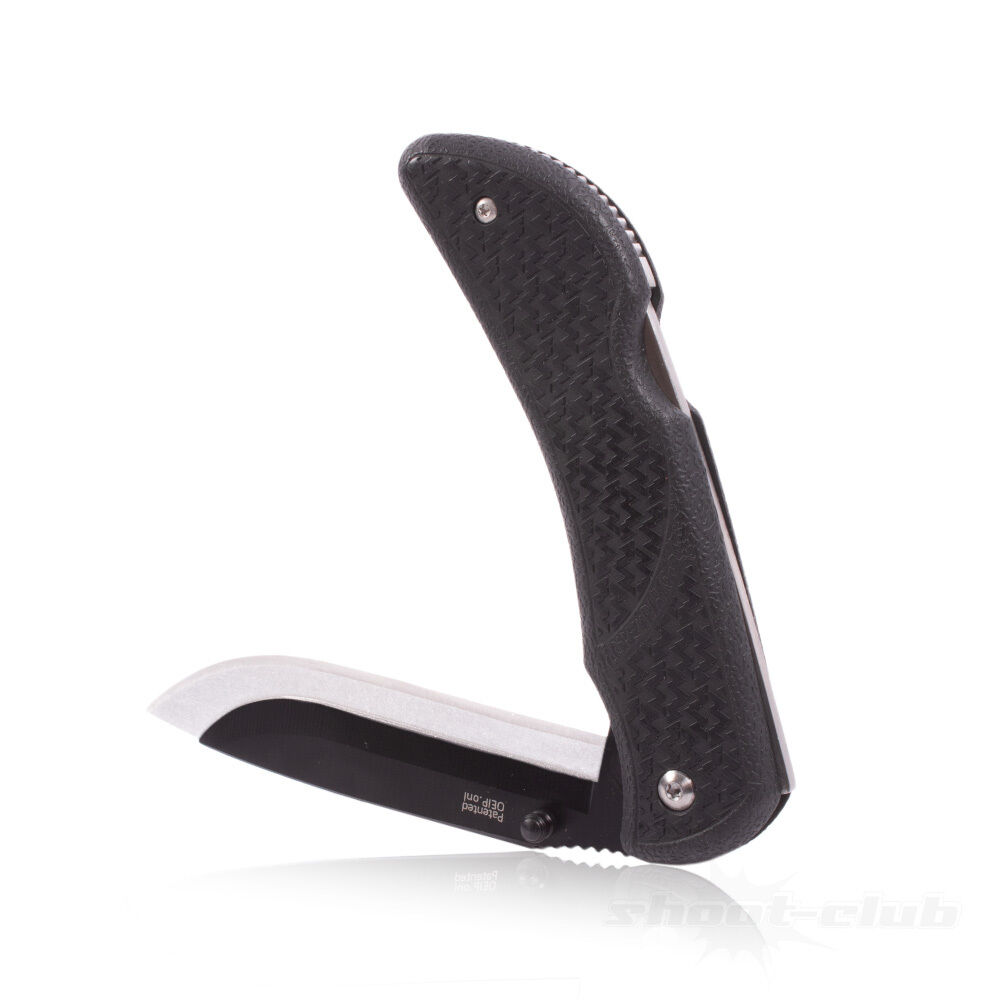 Das Razor Lite 3,5 Zoll ist ein praktisches Taschenmesser mit Klingenschnellwechselsystem und kommt in der Farbvariante Schwarz. Mit dem patentierten RazorSafe®-System können die Klingen mühelos gewechselt werden, ohne dass dazu Werkzeug benötigt wird. Im Gegensatz zum Razor Work, enthält das Lite eine Drop-Pointklinge. Der Klingenhalter besitzen eine schwarz oxidierte Oberflächenveredelung. Bei Bedarf kann die Klinge aus 420J2 Edelstahl gegen einen passenden Klingentyp getauscht werden. Passend sind die Ersatzklingen vom Typ 350 als Drop-Point oder Gutting Klinge sowie Typ 500 Boning / Fillet Blade. Wie die meisten Taschenmesser von Outdoor Edge ist auch dieses Messer mit Backlock und Daumenpin ausgestattet, sodass es mit einer Hand bedient werden kann. Im Gegensatz zum Razor EDC Lite besteht der Griff ausschließlich aus rutschfestem TPR. Im Gesamtergebnis ist das Messer dadurch geringfügig schwerer. Im Lieferumfang befinden sich 5 Drop-Point Ersatzklingen 3,5 Zoll. Das Messer ist universell einsetzbar und perfekt für alltägliche Aufgaben.