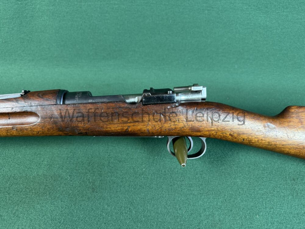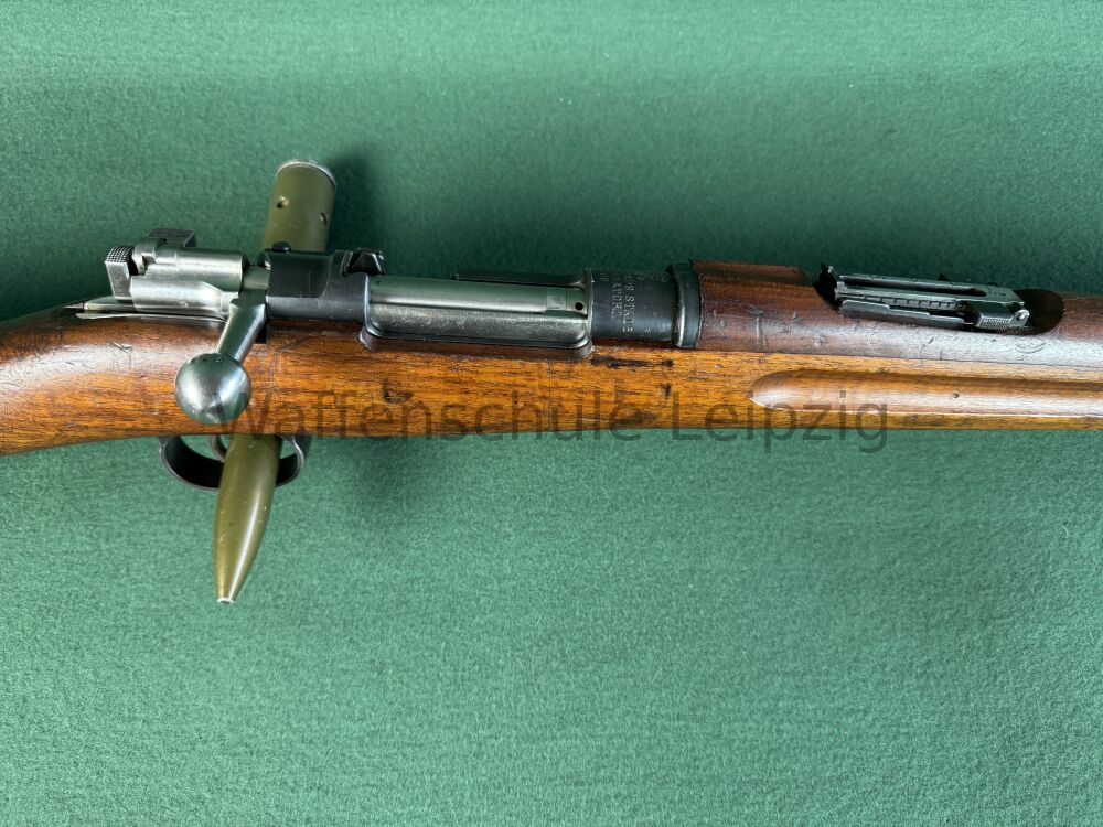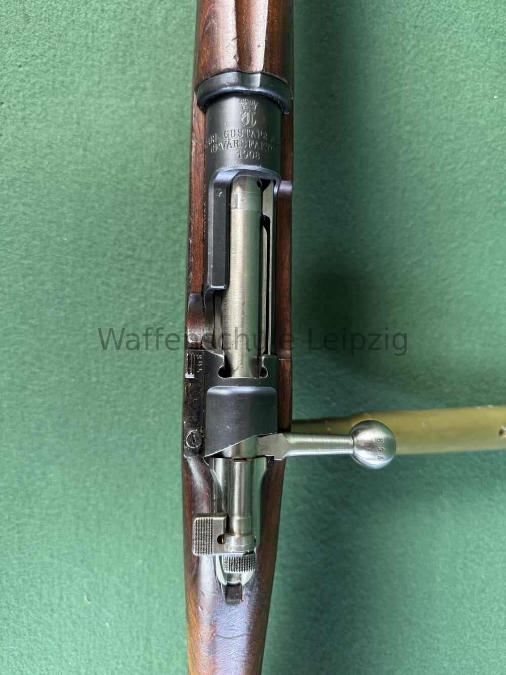 Repetierbüchse Kal. 6,5x55, Carl Gustaf M96, von 1908, mit Mündungsgewinde, Kornschutz, Lauflänge ca. 75 cm, Lauf ist blank,