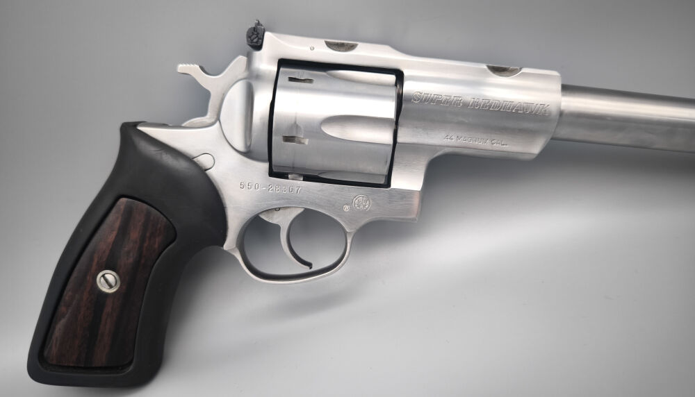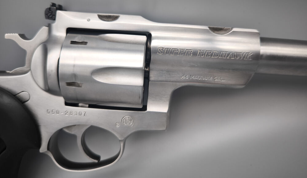 Der Ruger "Redhawk" Revolver ist der erste Revolver der speziell für das starke Kaliber .44 Magnum entwickelt wurde. Der Rahmen ist entsprechend dimensioniert. Charakteristisch für diesen Double Action Revolver ist das von unten eingesetzte Schlosswerk im beidseitig geschlossenen Rahmen. Die Trommel ist vorne und hinten im Rahmen verriegelt. Die "Super Redhawk" ist für die Verwendung einer Optik konstruiert. Ruger Aufkippmontagen für 1" Mittelrohr sind günstig verfügbar.