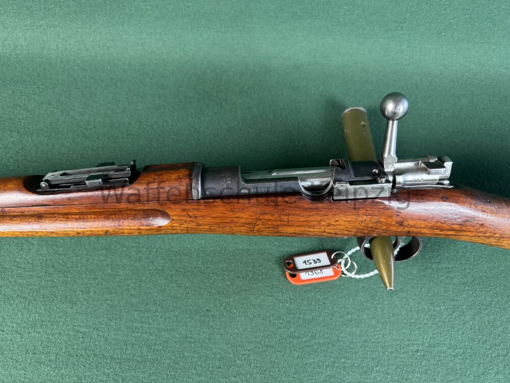 Repetierbüchse Kal. 6,5x55, Carl Gustaf, von 1904, kein Mündungsgewinde, Marke im Schaft fehlt, offene Visierung Seiten- und Höhenverstellbar, Waffe dem Alter entsprechend guter Zustand