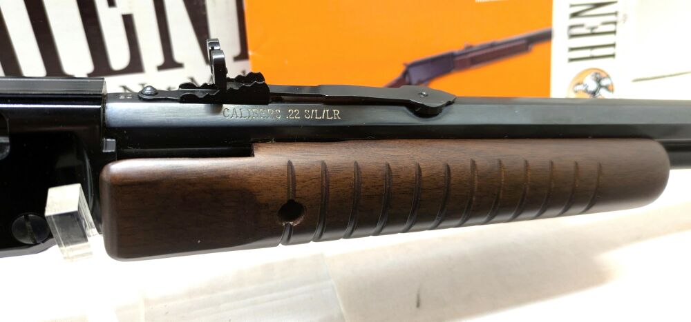 Neuwertiger Vorderschaftsrepetierer H003T Octagon von Henry Repeating Arms caliber 22lr Röhrenmagazin Originalkarton   ...weiterlesen