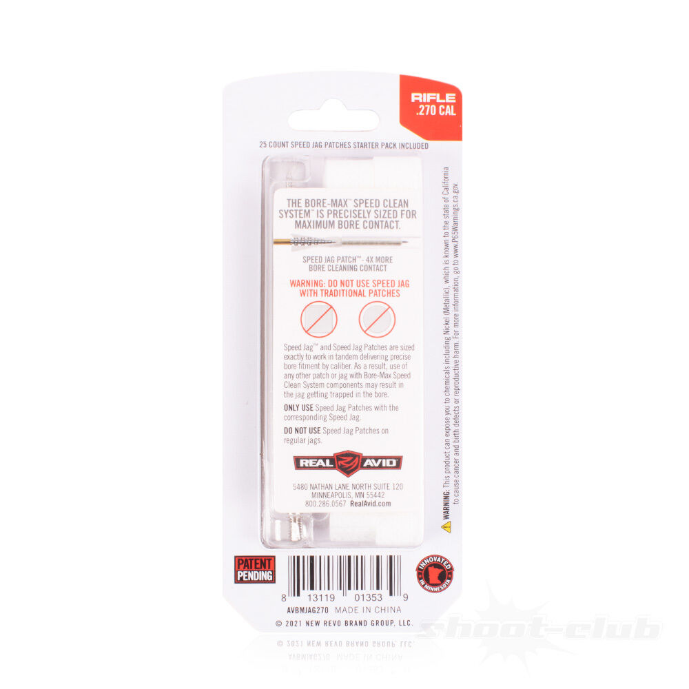 Hinweis: Den Real Avid Bore-Max Speed Jag bitte ausschließlich mit Bore-Max Speed Patches verwenden.