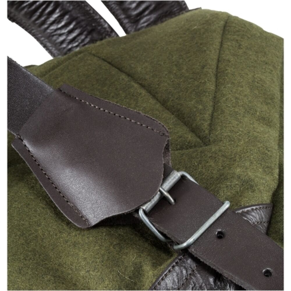 Geräuschloser Lodenrucksack in kompakter Form und Größe für die wichtigsten Jagdutensilien. Traditioneller Rucksack aus Loden (80% Schurwolle, 20% Polyamid) mit lautlosen Knebelverschlüssen aus Holz - da kann nichts klappern. Auch die verstellbaren Schnallen an den gepolsterten Schulterriemen sind mit Leder bedeckt: so entsteht kein Geräusch und eventuellen Beschädigungen des Gewehrs wird vorgebeugt. Mit 2 Seitentaschen ca. 23x10 cm und Vortasche ca. 20x18 cm. Mit schmutzabweisendem und abwischbarem Innenfutter.
