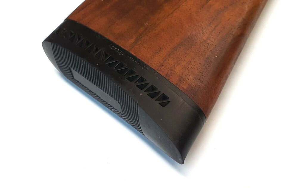 Edelholzabschluss an Vorderschaft und Pistolengriff.