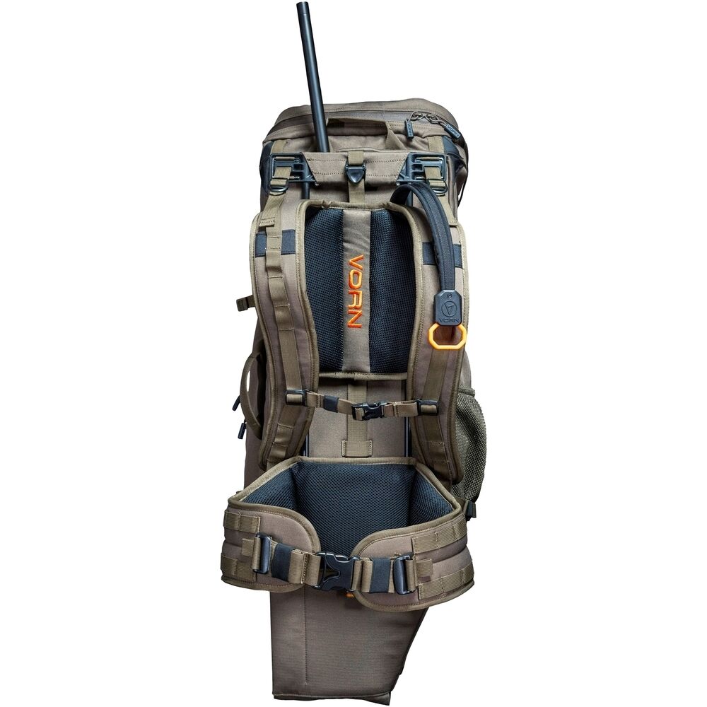 Ausgestattet ist der Jagdrucksack mit einem Außen- und Innenrahmen, der für optimale Stabilität und Tragekapazität sorgt. Darüber hinaus verfügt der EV45 nicht nur über einen gepolsterten Hüftgurt mit MOLLE-Befestigungspunkten, sondern auch über komfortable Schultergurte mit VORN-Pin-Lock-System zur Höheneinstellung. Zusätzliche Handgriffe, Kompressionsriemen und Befestigungspunkte ermöglichen eine einfache Handhabung.