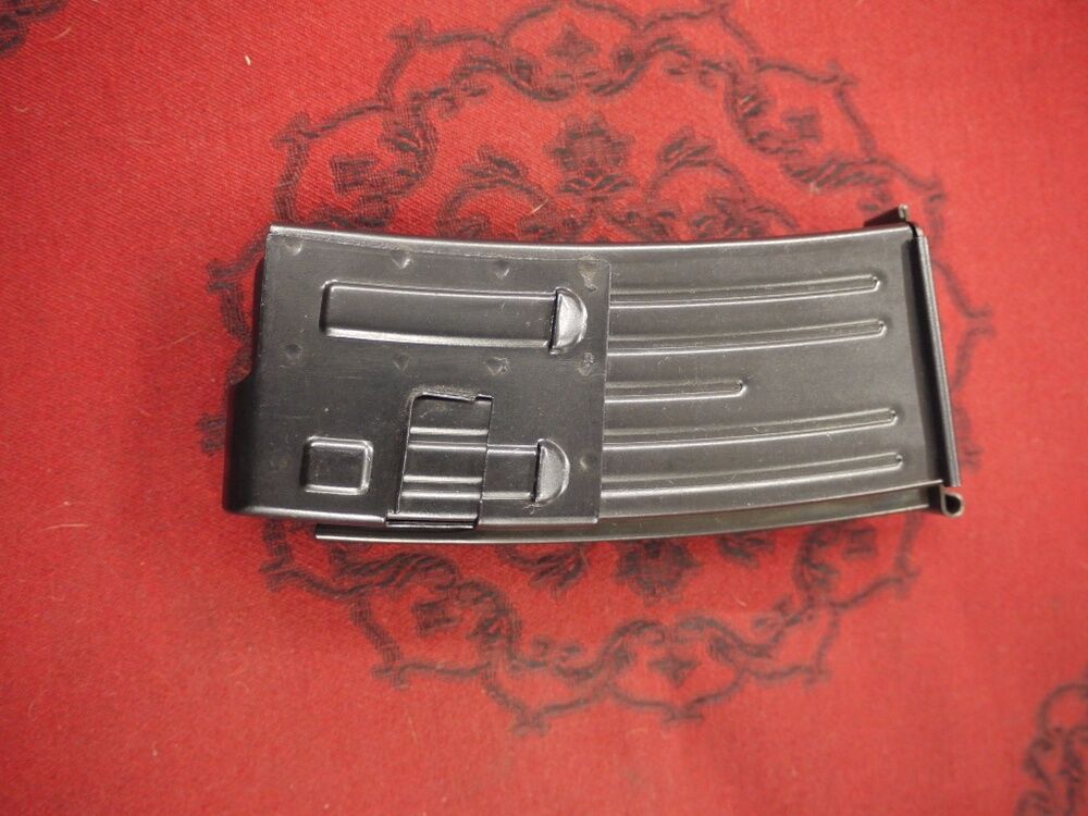 Besonders hochwertige 10 Schuss Magazin Reproduktion, welche dem original Wehrmachts-Magazin aus WKII Fertigung nahezu 100%ig detailgetreu nachempfunden ist. Daher aus robustem, brüniertem Stahlblech (keine Sho... Fertigung) mit Bestempelung ''MP43''. Lediglich die Abnahmestempel fehlen.