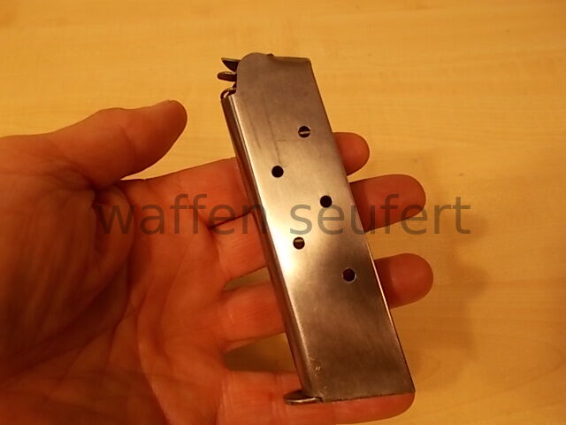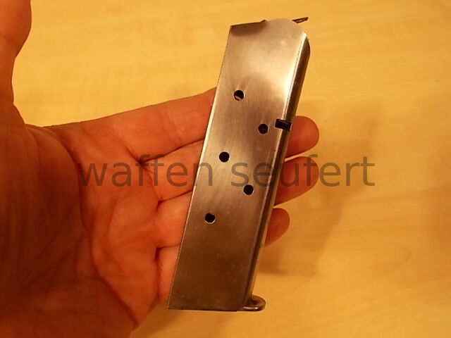 Colt Government .45Auto Ersatzmagazin Series 70. Originalmagazin gefertigt Mitte der 1970er Jahre. Beschriftet auf dem Magazinboden Colt .45 AUTO. Sehr guter praktisch neuwertiger Zustand ...weiterlesen