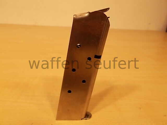 Colt Government .45Auto Ersatzmagazin Series 70. Originalmagazin gefertigt Mitte der 1970er Jahre. Beschriftet auf dem Magazinboden Colt .45 AUTO. Sehr guter praktisch neuwertiger Zustand