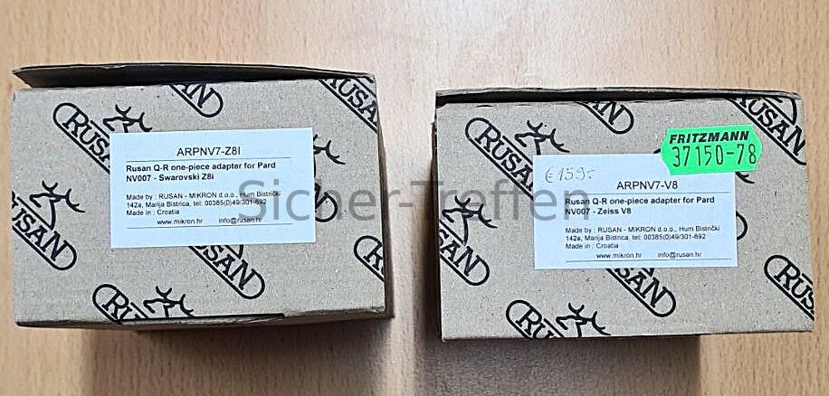 zwei neue RUSAN Adapter für PARD NV007 und baugleiche Geräte für jeweils ZEISS V8 Zielfernrohre und SWAROVSKI Z8i Zielfernrohre zum Sonderpreis ...weiterlesen