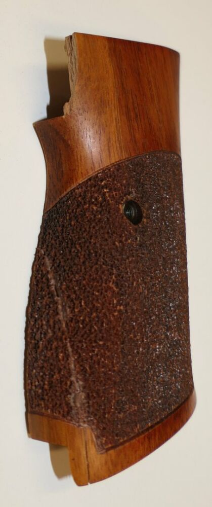 Die rechte Griffschale ist auf der hinterseite beschädigt. Unten wurde sie geklebt. Siehe Bilder
