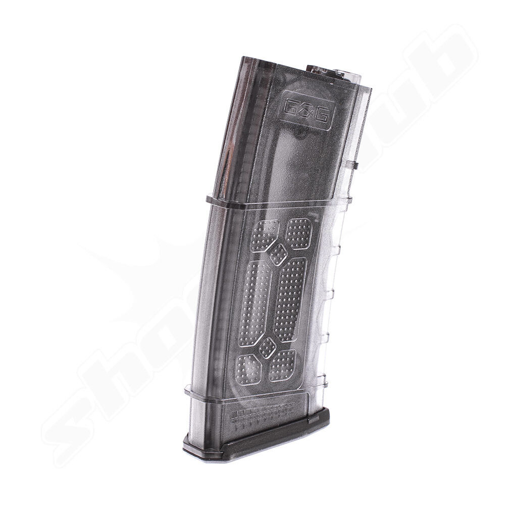 Bei diesem Magazin handelt es sich um ein Midcap M4/M16/AR15 Magazin aus dem Hause G&G. Das Magazin fasst 105 Schuss im Kaliber 6 mm BB.