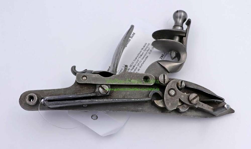 Baujahr: ca. 2010, Zustand: 1-2komplettes Schloß einer Brown BESS Steinschloss-Muskete nach englischem Vorbild, als Replika nach "William Grece mit Datum 1762 Krone mit Buchstaben GR für Georgius... ...weiterlesen