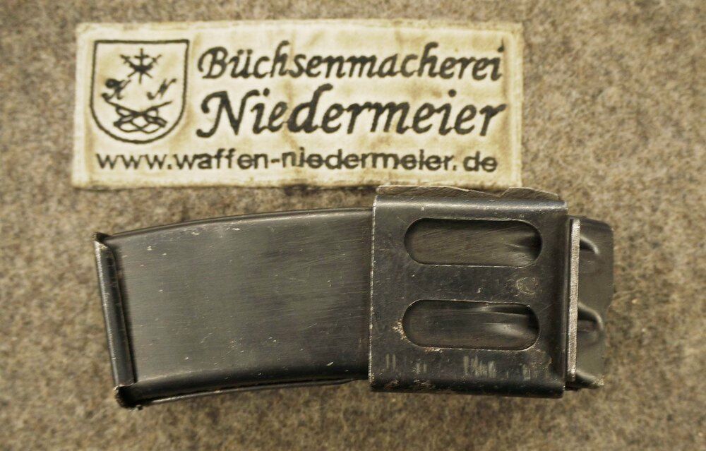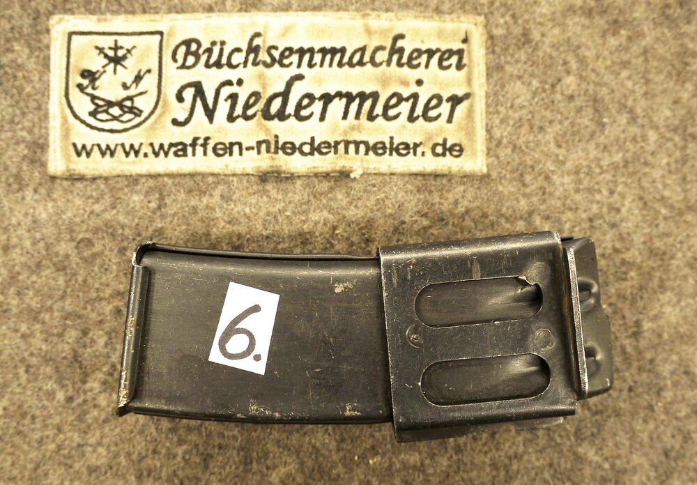 Originales, auf 10 Schuss gekürztes PPSh41 Stangenmagazin (Bananenmagazin) in leicht gebrauchtem Zustand. Teilweise mit vereinzelten Flugroststellen. Aus WK2-Fertigung. Daher glatt, ohne Sicken.... ...weiterlesen