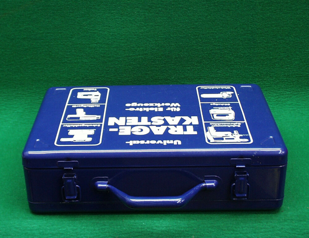 Einfacher, gebrauchter, Werkzeugkoffer/Pistolenkoffer, blau, mit Schaumstoff, Größe: ca. 39x24cm Höhe: ca. 11cm; Innen:  ca. 38x23,4cm Höhe unten: ca. 9cm - Deckel ca. 2cm   ...weiterlesen