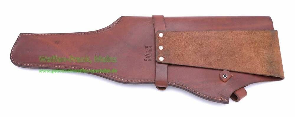 Original Gürtelholster für Contender-Kipplauf-Pistole, für Rechtshänder, kann auch linksseitig getragen werden, mit Sicherungslasche, für Waffen mit Lauflänge bis 14 Zoll, Modell Hunter/65-876, aus braunem Rindleder in guter Sattler-Verarbeitung ...Gelegenheit: Euro 149,--
