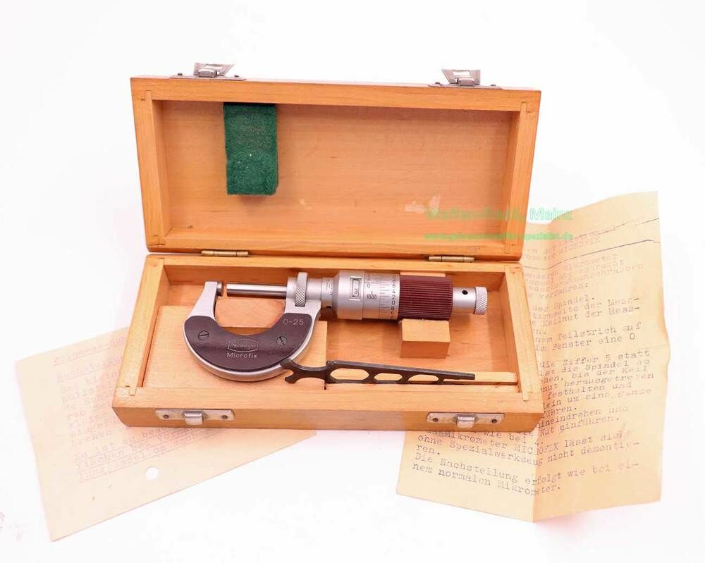 Ganzmetallausführung, Messbereich 0-25mm/0,01mm, mit Nachstellschlüssel, original Bedienungsanleitungen, in Holz Etui