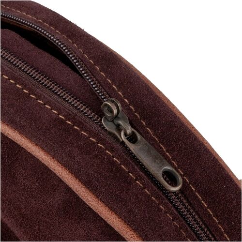 Die Jagdhorntasche verfügt über einen Reißverschluss, Ledertragegriff und einen abnehmbaren Leder-Umhängeriemen.