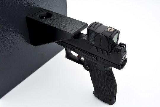 Waffe wird durch starke Neodymmagneten sichergestellt. Es ist keine weitere Sicherung notwendig.