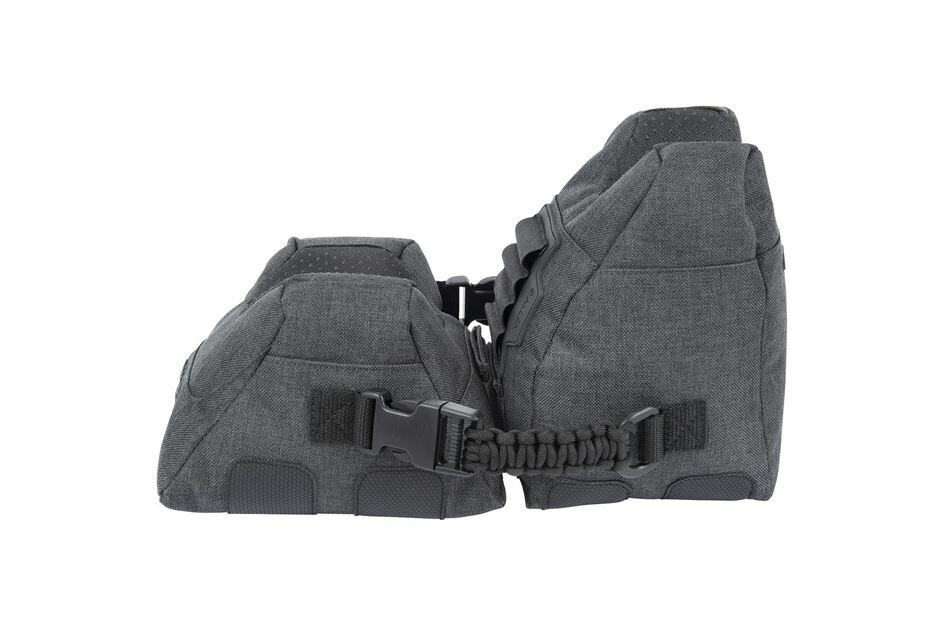 Hierzu können die beiden Komponenten mittels seitlicher Schnallen miteinander verbunden werden, wobei ein Gurt aus einem Paracord-Geflecht besteht, das sich einfach zu einem Tragegriff umfunktionieren lässt.