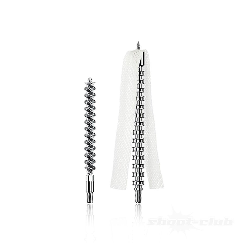 Das Real Avid Bore-Max Speed Clean Upgrade Kit ist eine Erweiterung der Produktreihe Bore-Max Speed, bestehend aus einem Putzstock mit ergnomisch geformten Griff und den dazu passenden Reinigungsbürsten. Das Upgrade Kit enthält 2 verschiedene Reinigungsbürsten und 75 Reinigungspatches. Optimal an die Größe des Kalibers angepasst, ermöglichen sie maximale Reinigung. Die Bürste weist eine höhere Borstendichte als andere Reinigungsbürsten auf. Die Patches sind im gegensatz zu anderen sehr viel länger. Dadurch erreicht man eine größere Reinigungswirkung, da sich das Patch um die gesamte Länge der Bürste legt und nicht nur um die Spitze.