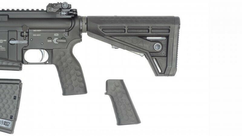 BL M-LOK Handguard 13" slim, OA M4-Schaft, BUIS, MFD, 2x OA Griff "new generation" Golfballdesign/15° M und L, 1x 10 Schuss OA Active Mag, 1x OA Transportkoffer mit Schloss, 1x Bedienungsanleitung