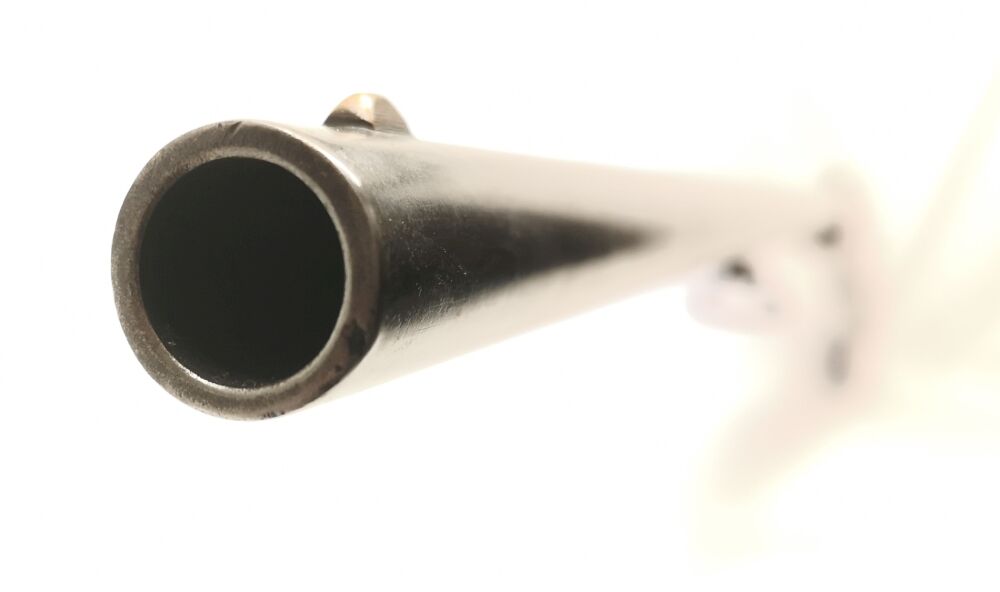 Besonderheit: Sammlerwaffe Husqvarna Rolling Block Flinte im Kal. 16/65, extrem langer Lauf (100cm), Schaftbacke rechts, Metallschaftkappe, feste Kimme und Korn, Rolling Block Verschluß mit Auszieher, vorderer Laufteil Achtkant, Rest rund, Laufbrünierung und Holzzustand sehr gut, im Laufinneren die ersten 25cm leicht rauh, dann bis zum Laufende blank und sauber (hat vermutlich mit der länge der eingesetzten Putzstöcke beim Vorbesitzer zu tun), Beschußzeichen verm. Schweden, verdeckt unter dem Vorderschaft, wir empfehlen zur Sicherheit einen Neubeschuß (daher Verkauf nur an Händler und Sammler!!!), bei der Einschätzung der Zustandsnote wurde das Alter berücksichtigt *** Aufgrund der länge der Waffe wird Sperrgutzuschlag fällig ***