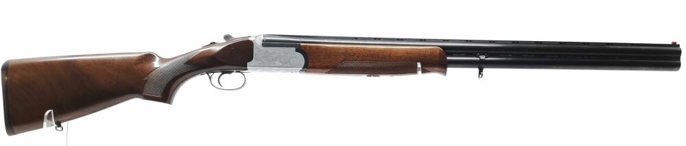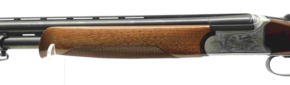 Besonderheit: schöne jagdliche, aber auch sportlich nutzbare Bockdoppelflinte von Rizzini, umschaltbare Laufpriorität, Kal. 12/76 (verstärkter Beschuß, kein Stahlschrotbeschuß), Lauflänge 710mm, Fiberglaskorn orange, schöne Systemgravur (jagdlich), Gummischaftkappe, Riemenbügelösen, Choke * und *** (voll und halb), Einabzug, Zustand Note 2 mit geringen Nutzungsspuren