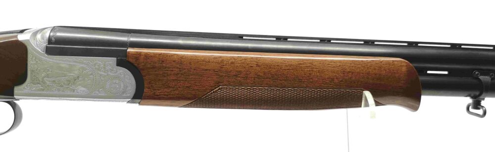 N3835 Rizzini - ohne - Note 2 - schöne jagdliche, aber auch sportlich nutzbare Bockdoppelflinte von Rizzini, umschaltbare Laufpriorität, Kal. 12/76 (verstärkter Beschuß, kein Stahlschrotbeschuß), Lauflänge 710mm, Fiberglaskorn orange, schöne Systemgravur (jagdlich), Gummischaftkappe, Riemenbügelösen, Choke * und *** (voll und halb), Einabzug, Zustand Note 2 mit geringen Nutzungsspuren *** EWB-pflichtig ***