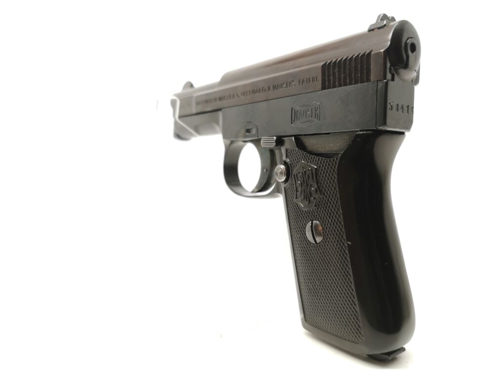 SHOP LINK N3906 Mauser - 1910/14 - Note 2 - Mauser Taschenpistole Mod. 1910/14 im Kal. 6,35mm Browning aus Sammlungsauflösung, schwarze Bakelit-Griffschalen (linksseitig ist ein Stück aus der Griff... ...weiterlesen