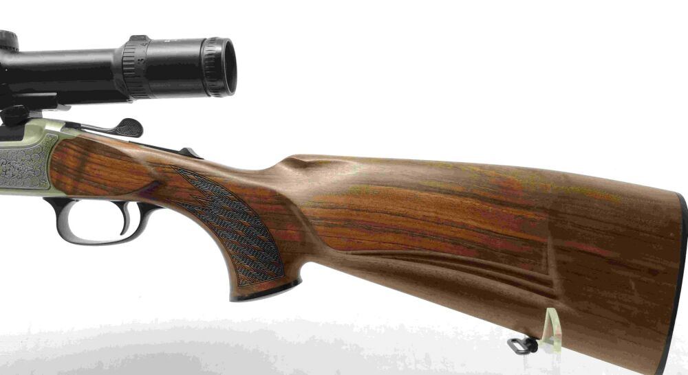 Besonderheit: führige gut gepflegte Kipplaufbüchse BLASER, Modell K95, Kaliber 8x57JRS, mit schöner Holzvariante und Carl Zeiss Diavari VM mit 2,5-10x50* (Leuchtpunkt (Nacht)), am Hinterschaft leichte jagdliche Nutzungspuren sichtbar, technisch einwandfrei, Blaser-Sattelmontage, offene Visierung wurde erhalten, Riemenbügelösen, Handspanner, Schaftbacke links (für Rechtsschützen), Kunststoffschaftkappe
