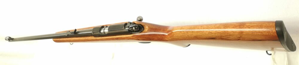 Besonderheit: robuster KK-Repetierer für Sport und Hobby, oder Fallenjagd, funktioniert tadellos, Kunststoffschaftkappe, Riemenbügelösen, verstellbare Schiebekimme, lackierter Holzschaft optisch Note 1-2, technisch einwandfrei, 11mm Prismenschiene für ZF-Montageringe, Steckmagazin für 5 Schuß, Waffe komplett im gutem bis sehr gutem Zustand, Korn mit Kornschutz, Made in China