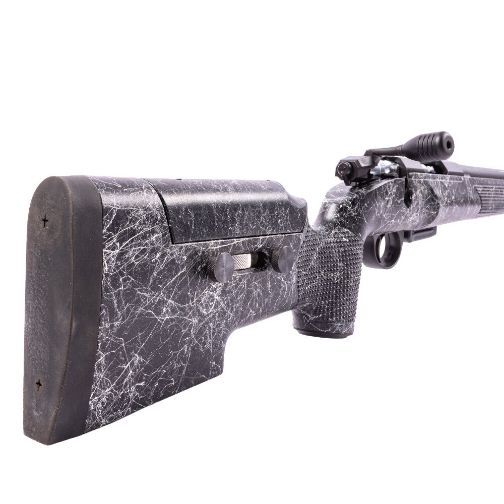 Der Mündungsdurchmesser von 28 mm sorgt für eine hohe Steifigkeit, während das Mündungsgewinde 5/8" x 24 UNEF die einfache Montage von Zubehör wie Mündungsbremsen oder Schalldämpfern ermöglicht. Die Sicherung der Tactical EVO ist extrem widerstandsfähig und verriegelt sowohl den Abzug als auch den Abzugstollen, was ein besonders hohes Sicherheitsniveau gewährleistet. Diese Bauweise verhindert ungewollte Schussauslösungen und schützt den Schlagbolzen zuverlässig. Der mit Fiberglas verstärkte Kunststoffschaft wurde speziell für das einzigartige Verschlusssystem entwickelt. Seine griffige, kratzfeste Oberfläche verbessert das Handling und verleiht der Waffe ein markantes, modernes Erscheinungsbild.