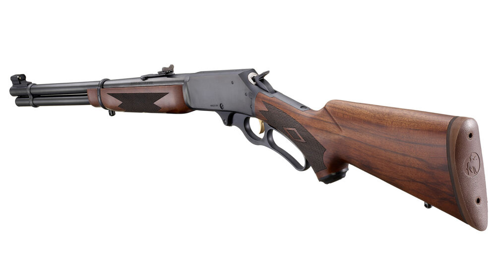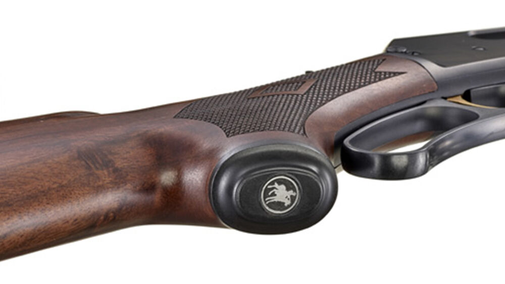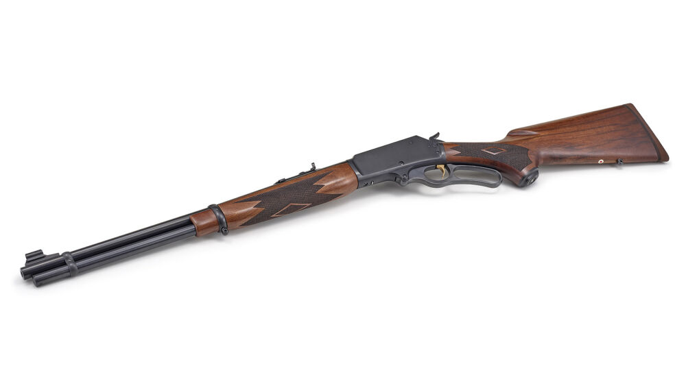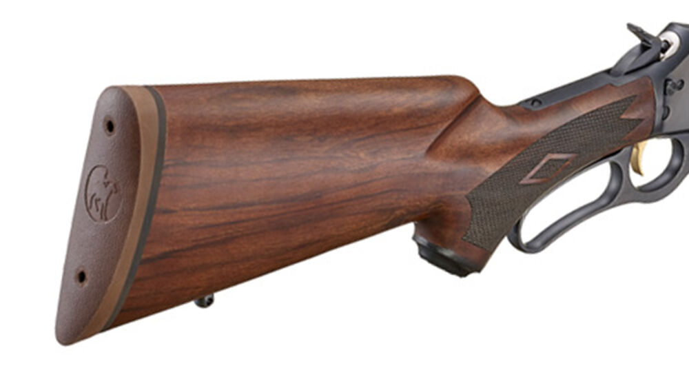 Das Classic Series Model 336™ im Kaliber .30-30 Win. ist mit einem schön gearbeiteten Schaft und Vorderschaft aus Holz des amerikanischen schwarzen Walnussbaums ausgestattet. Scharf gestochene Fischhaut sowohl auf Schaft als auch auf Vorderschaft verleiht dem Gewehr eine ausgezeichnete Optik und Griffigkeit. Die schwarze Pistolengriffkappe des Schafts ist mit dem Marlin® Pferd und Reiter Medaillon verziert und der Vorderschaft ist mit einem Laufband befestigt.