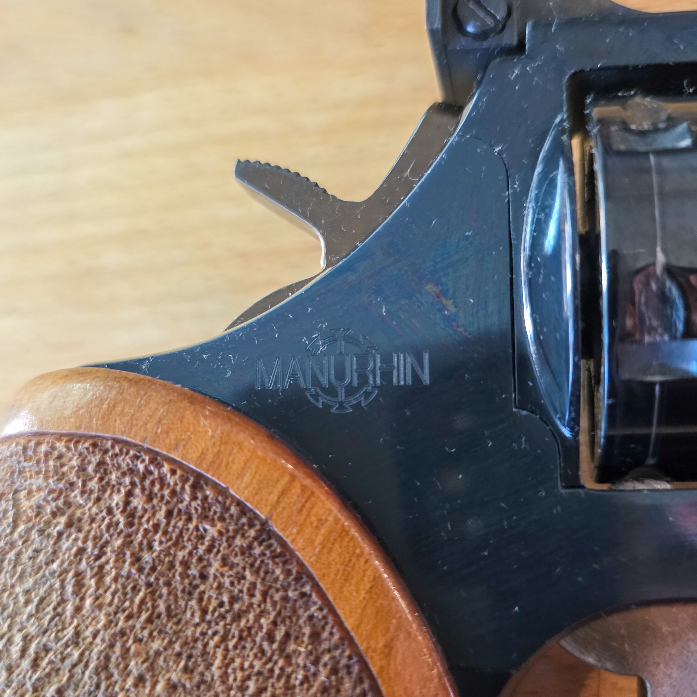 Manurhin MR73, .357 Magnum, 6" Revolver Manurhin MR73 im Kaliber .357 Magnum mit 6-Zoll-Lauf, französische Fertigung. Entsprechende Markierungen vorhanden („MR73 Cal. .357 Magnum“, „Manurhin“... ...weiterlesen