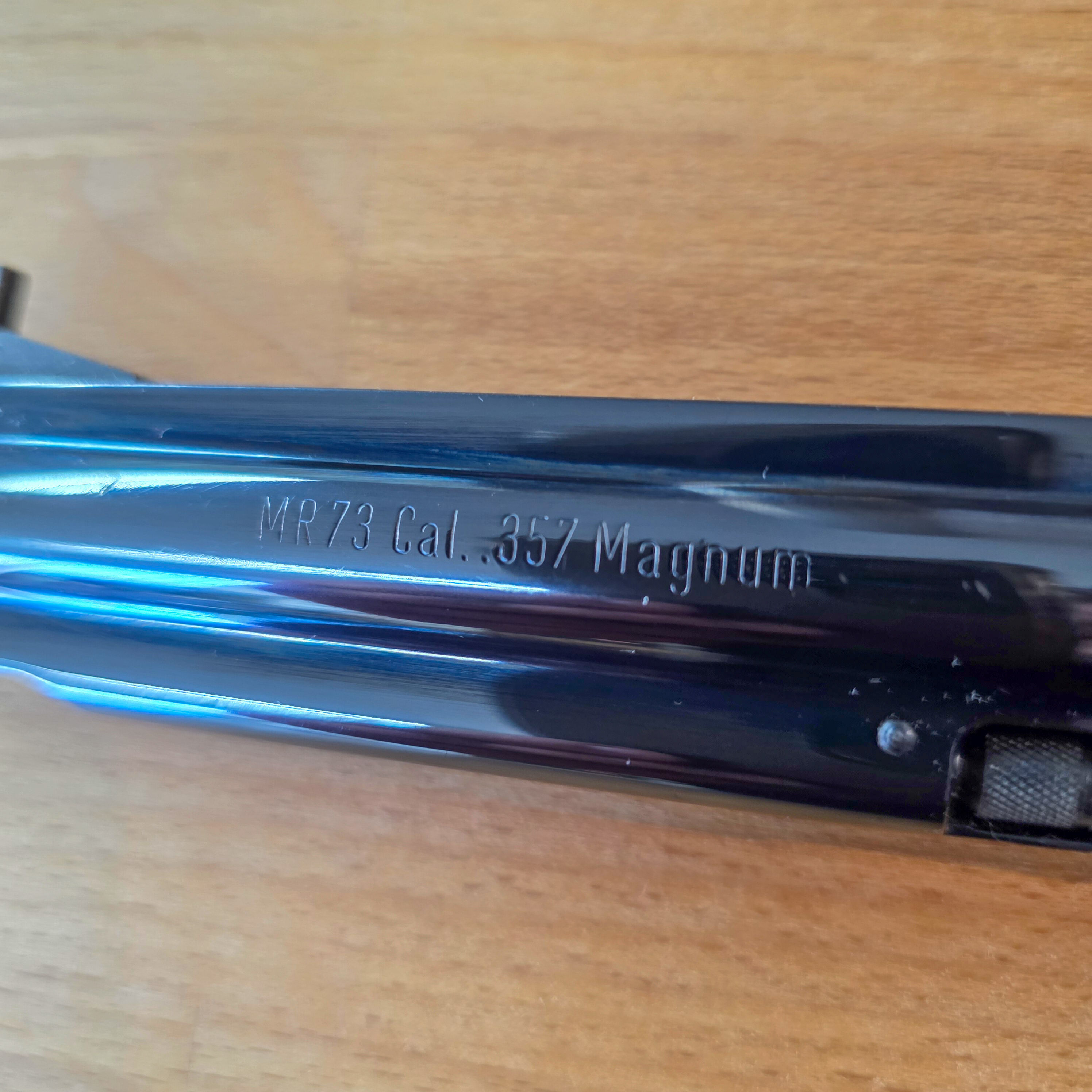 Entsprechende Markierungen vorhanden („MR73 Cal. .357 Magnum“, „Manurhin“, „made in France“).
