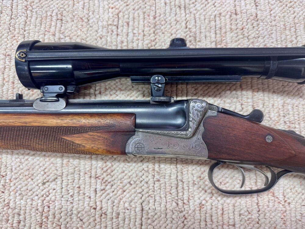 Es handelt sich um eine Bockbüchsflinte von Sauer & Sohn im Kaliber 16/70 und 7x65R. Ausstattung: Lauflänge 65 cm Offene Visierung Schaftlänge 37 cm Optik: S&B Wetzlar (6 × 42); ... ...weiterlesen