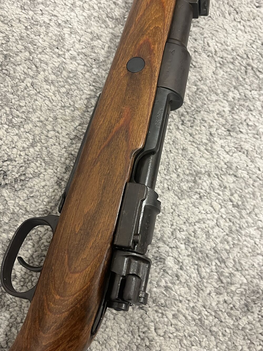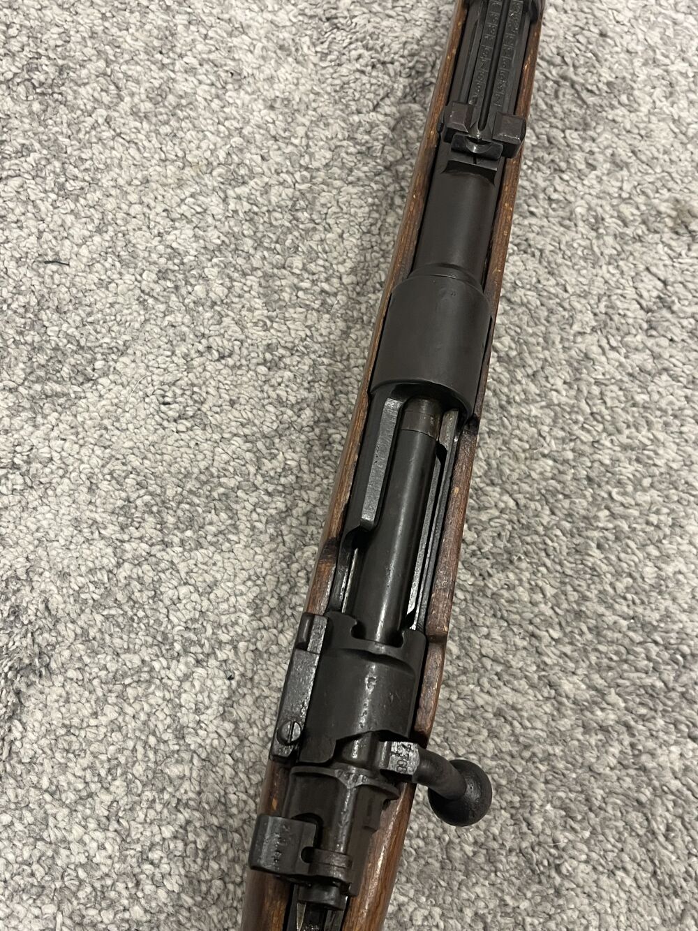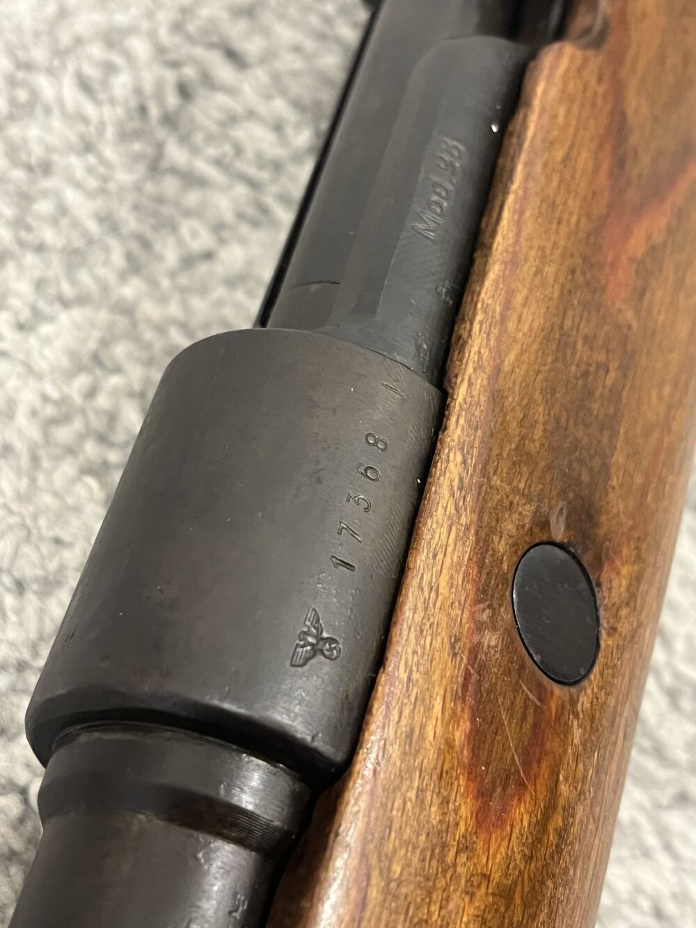 Der Karabiner trägt alle alten Stempel und Hoheitszeichen ( Adler mit Kellerfenster)
